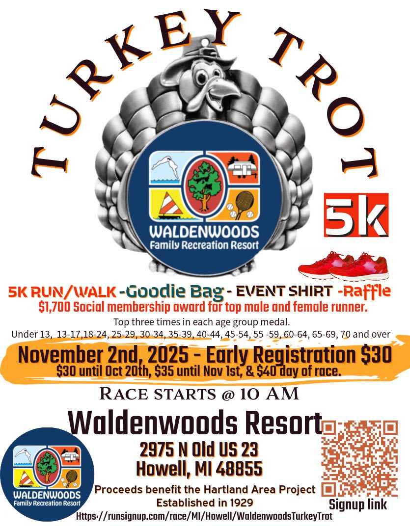 Lace up your running shoes and join us for a scenic trail run around beautiful Lake Walden! This family-friendly 5K Turkey Trot supports the Hartland Area Project – enriching our community since 1929, just like founder J. Robert Crouse envisioned. Whether you’re a seasoned runner or a casual trotter, come out for fun, fitness, and giving back to the social, educational, and cultural heart of Hartland.
